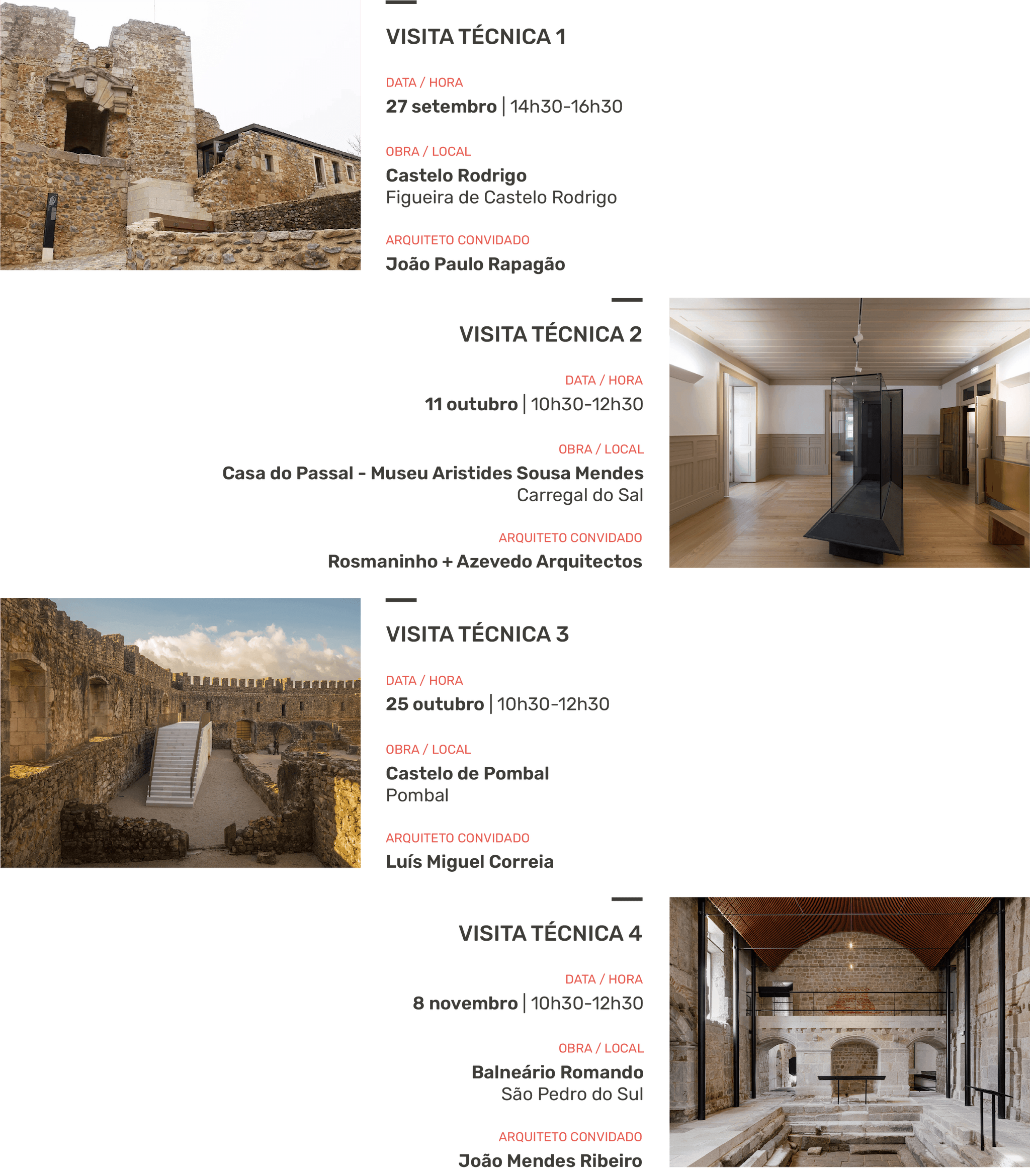Ao longo de quatro sábados, serão realizadas 4 visitas técnicas a obras reconhecidas como exemplos de boas práticas de intervenções em imóveis classificados, conduzidas pelos autores dos projetos: