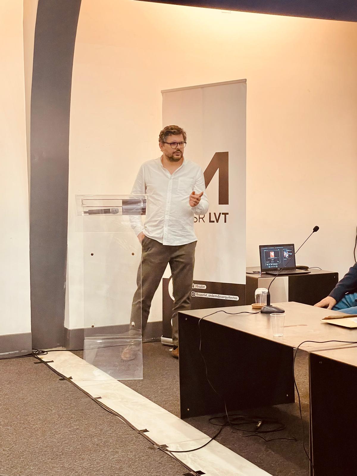 A sessão começou com a intervenção de Pedro Novo, presidente da Secção Regional Sul da Ordem, que relembrou “a dinâmica, valorizada e prosseguida pela Secção com a frequente apresentação pública de livros e com o convívio com os autores” e com o editor Jorge Ferreira, que disse continuar “entusiasmado por trabalhar na área da arquitetura e por partilhar com a Secção de Lisboa e Vale do Tejo esta dinâmica na área das publicações”.