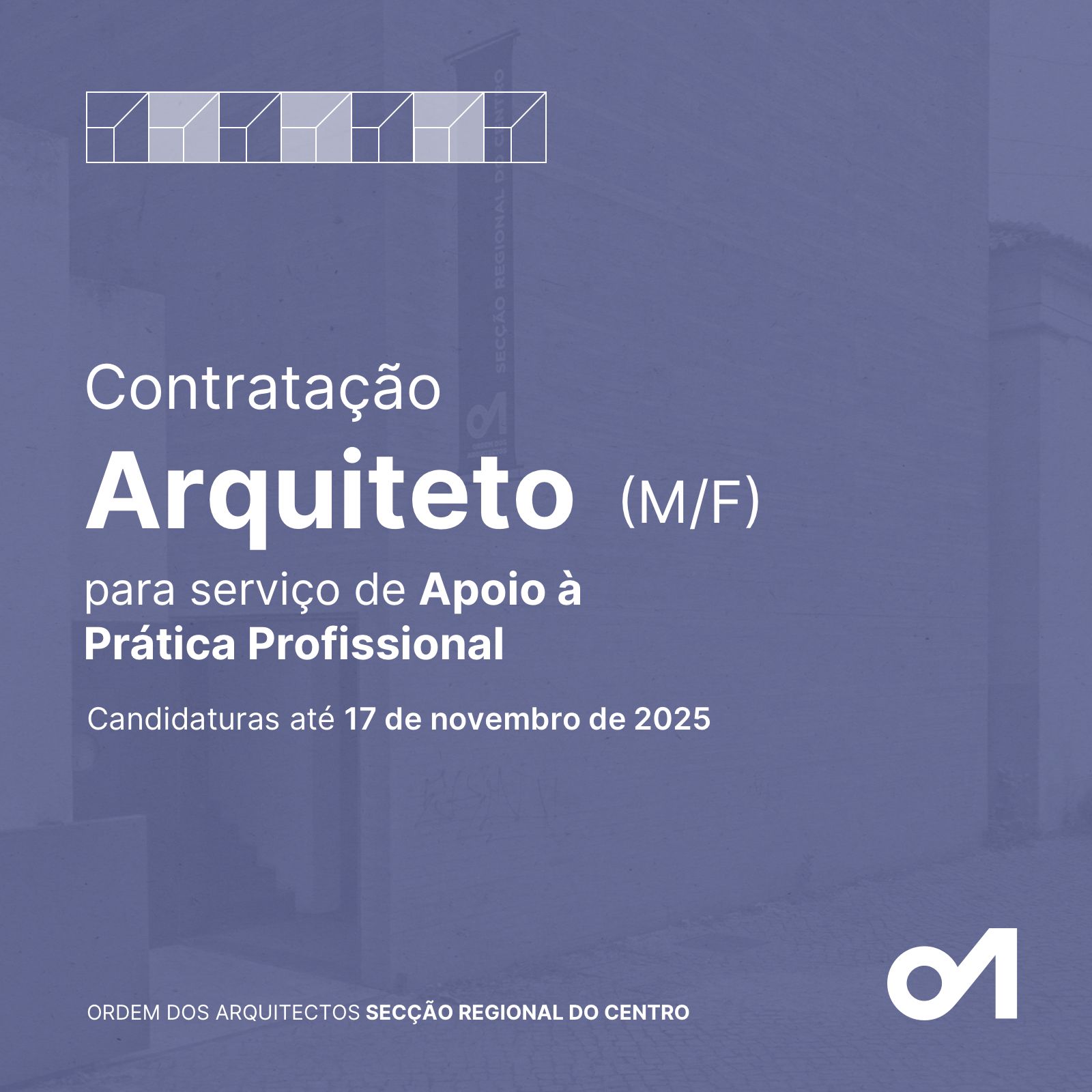 A Secção Regional do Centro da Ordem dos Arquitectos pretende contratar um Arquiteto (m/f), em regime de contrato de trabalho a termo resolutivo certo, por um período de 12 meses, para exercer funções de apoio especializado nas áreas da prática profissional e da admissão e inscrição.