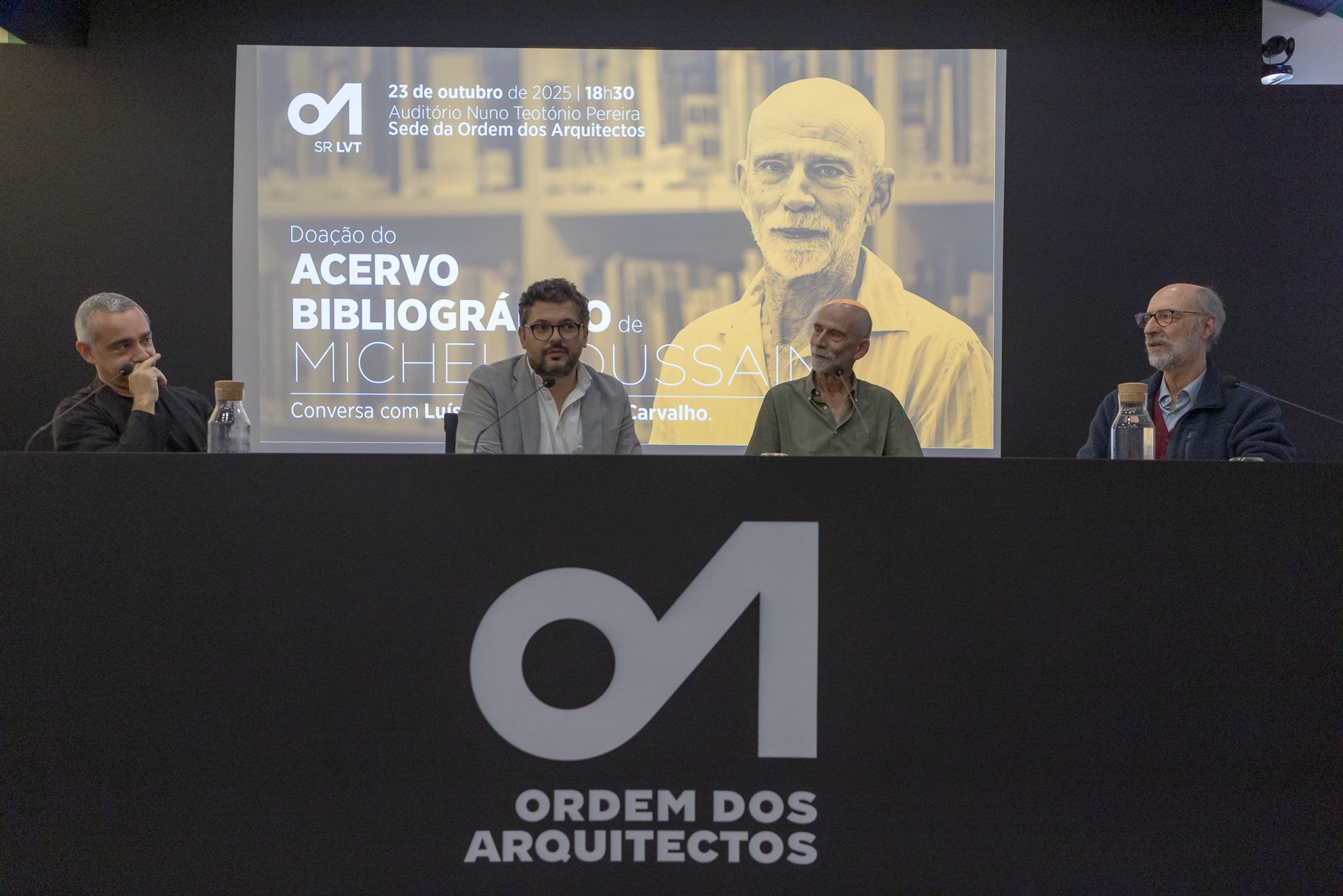 Num auditório repleto, os arquitetos Michel Toussaint, Luís Bissau e Ricardo Carvalho partilharam reflexões sobre a importância da investigação, da preservação da memória e da transmissão de conhecimento entre gerações.