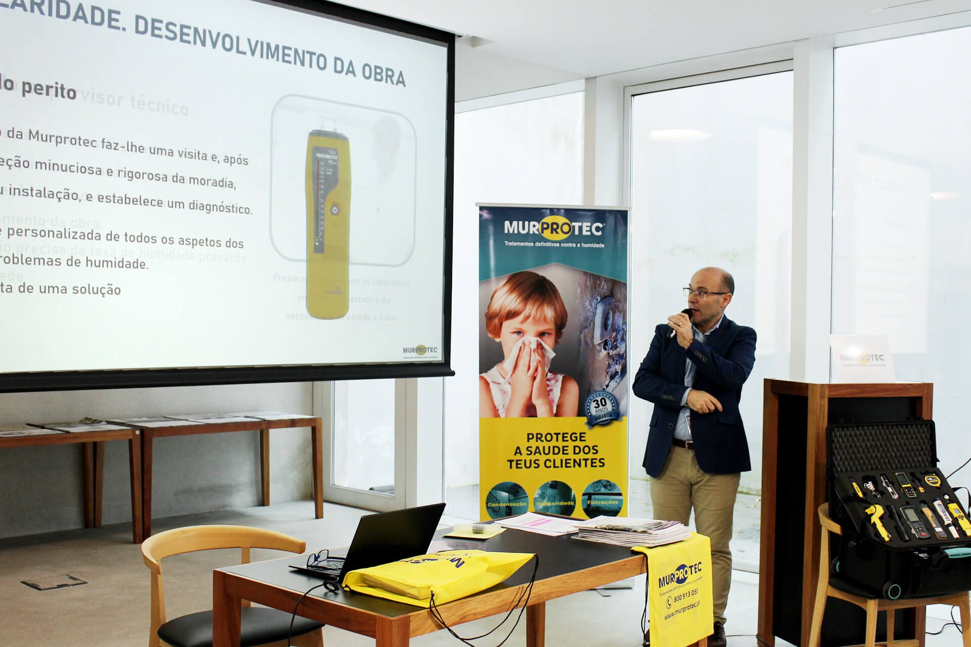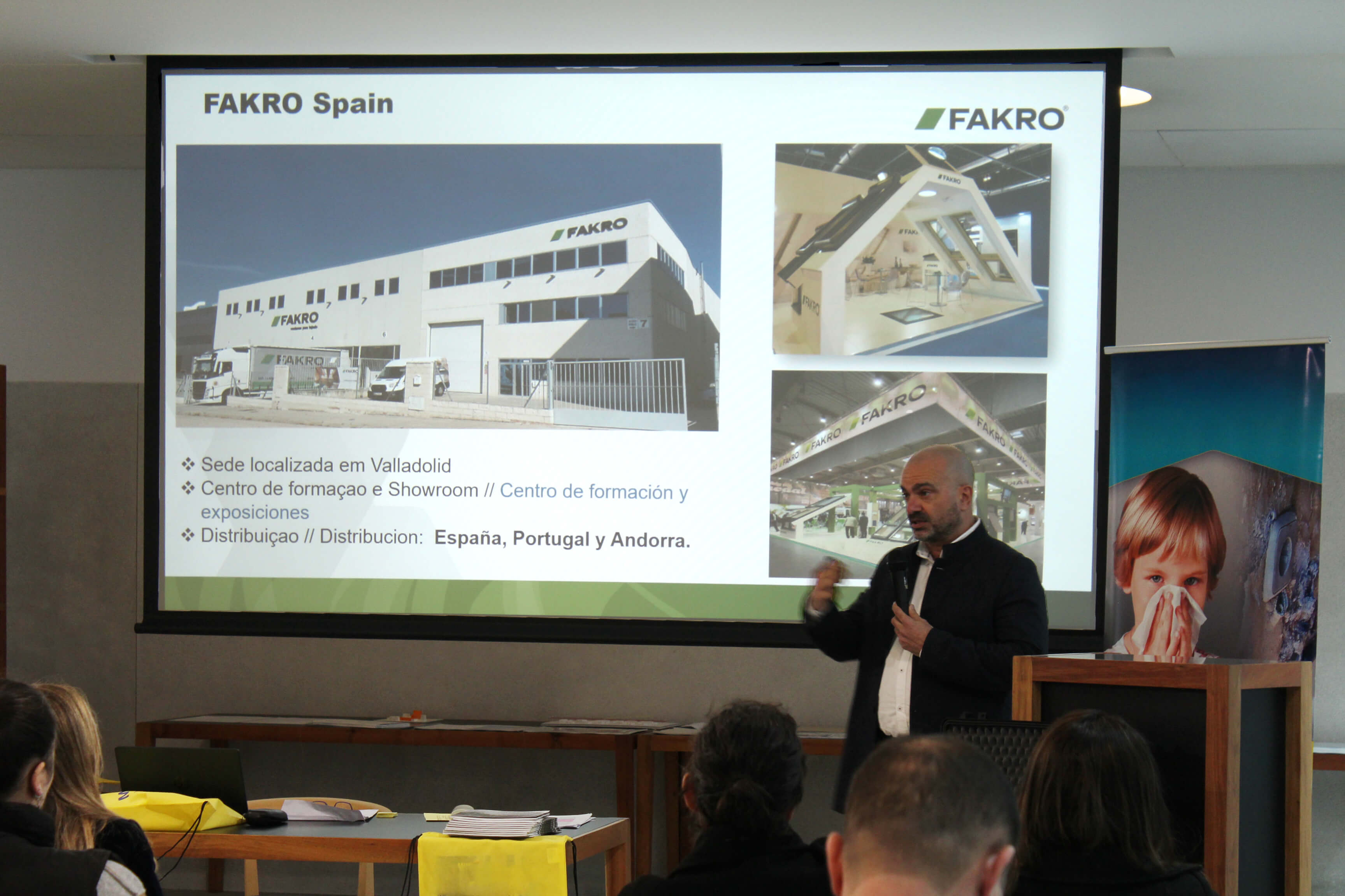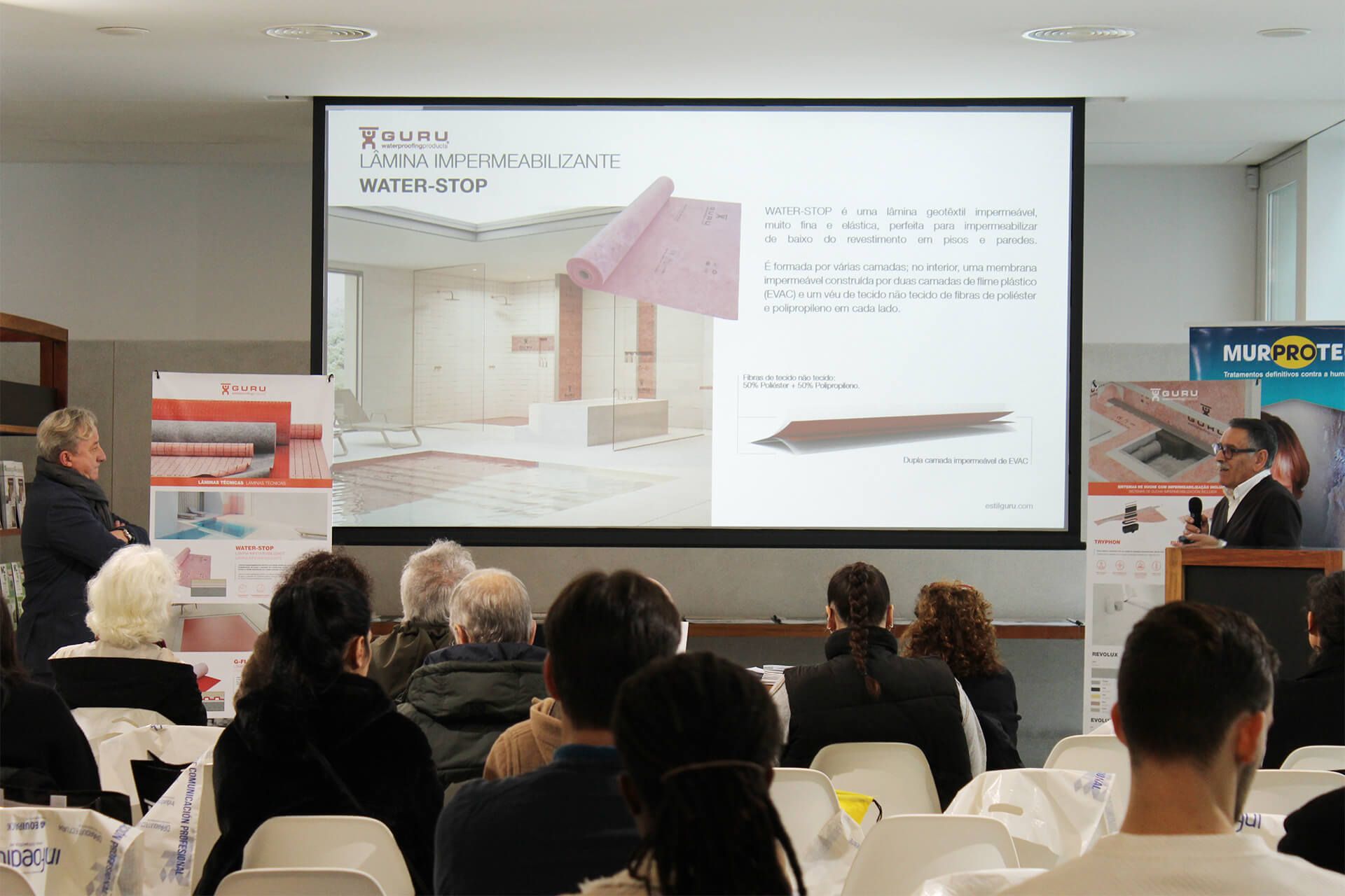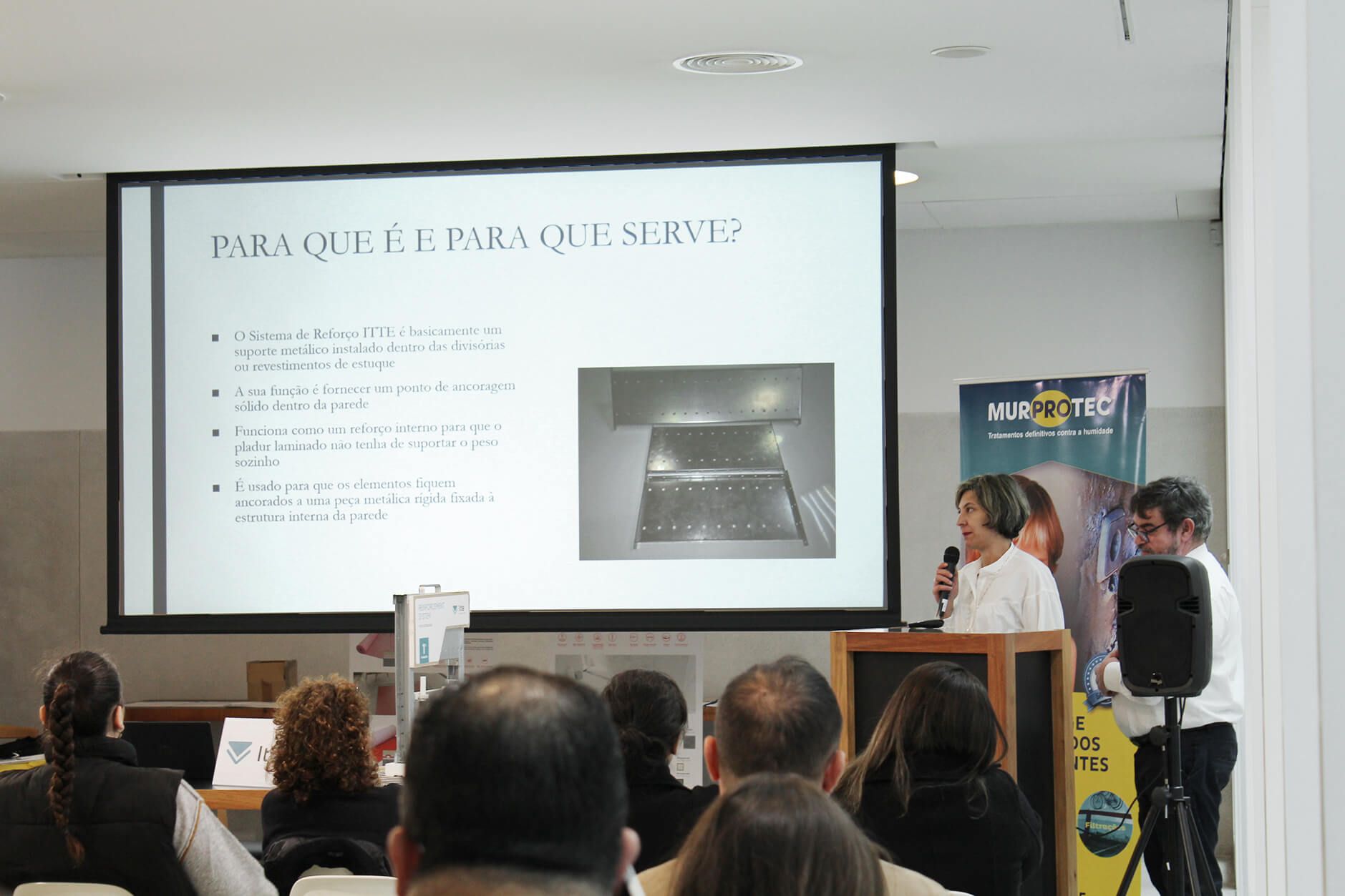 Seguiu-se a sessão dedicada às soluções para restauração de estruturas com injeções de resina, conduzida por Ricardo Val de Ovelha, Sales Manager da Uretek, bem como a apresentação sobre construção industrializada e Passivhaus, a cargo de Celso Almeida, Gestor de Exportação da Multipanel. Após a pausa para café, Cristina Alonso, responsável de Desenvolvimento de Produto da ITTE, apresentou o sistema de reforço ITTE para cargas em divisórias ligeiras. A temática da impermeabilização esteve em destaque na comunicação “Membranas técnicas de impermeabilização: a chave para evitar fugas antes que seja tarde demais”, apresentada por Salvador Silva, Area Manager Portugal da Estil Guru, e Alberto Espina, da mesma empresa. Durante a tarde, Miguel Ángel Leite, diretor da Agência Noroeste para Espanha e Portugal da Murprotec, abordou a humidade estrutural, as suas causas, consequências e tratamentos definitivos, encerrando o ciclo de apresentações Adolfo Fernández, delegado comercial da Fakro Galicia e Portugal, com a sessão dedicada à otimização de invólucros, soluções construtivas e Passive House.