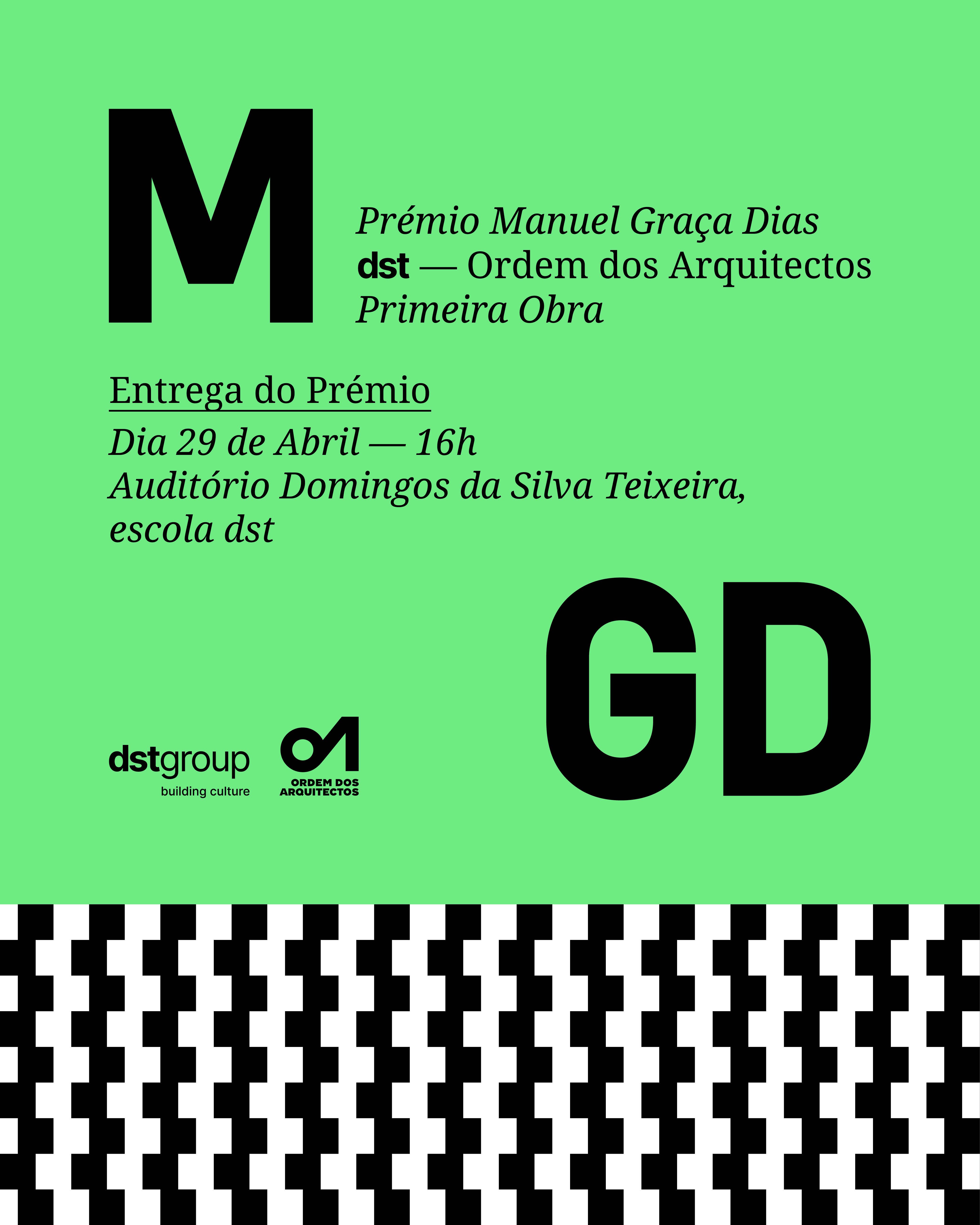 O Presidente da Ordem dos Arquitectos, Avelino Oliveira, e o Presidente do Conselho de Administração da dstgroup, José Teixeira, convidam para a cerimónia de entrega do Prémio Manuel Graça Dias, dst - Ordem dos Arquitectos, Primeira Obra que terá lugar no dia 29 de abril, às 16h, no Auditório Domingos da Silva Teixeira, escola dst, em Braga.